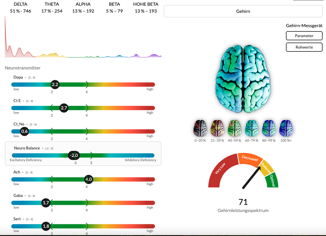 Inklusive Neurotransmitter, Gehirnwellen, Neurobalance und Gehirnleistungsspektrum