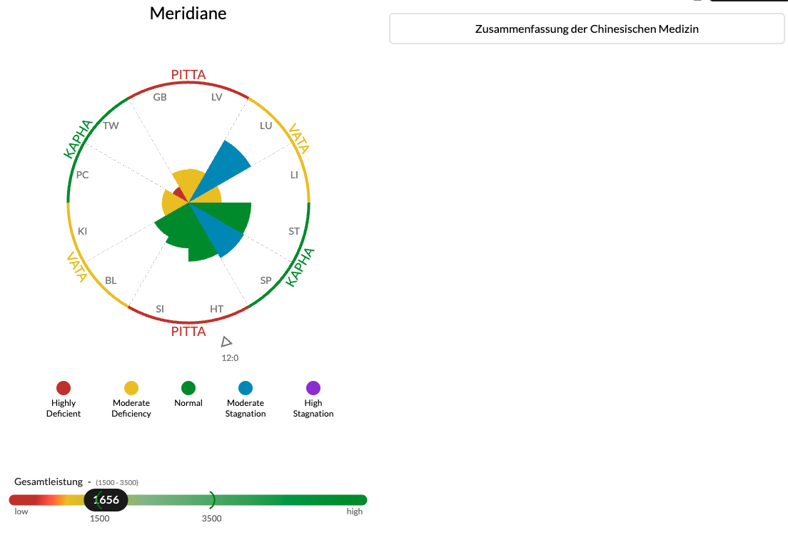HeartQuestPro liefert eine beeindruckende Bandbreite an Informationen, unter anderem zur Aktivität des autonomen Nervensystems, zum Zentralnervensystem, zur gesamten Hormonaktivität sowie zu den fünf Elementen der chinesischen Medizin. Zudem werden mögliche Hinweise auf Schilddrüsenstörungen sichtbar gemacht und das tatsächliche Alter mit dem biologischen Alter verglichen. Die Energiebalance jedes endokrinen Systems wird anschaulich visualisiert.